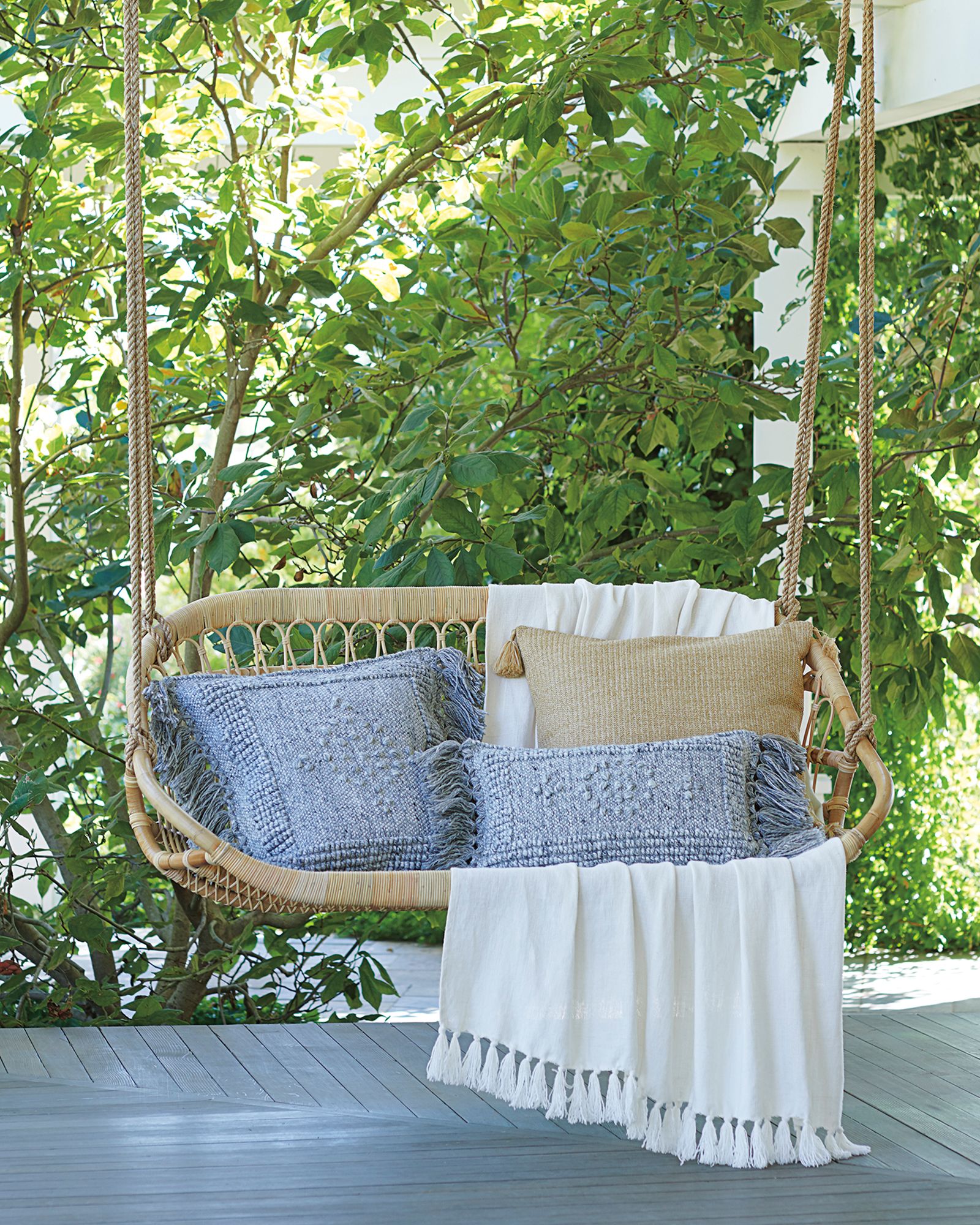 Serena & Lily’s Hanging Rattan Bench strikes the perfect blend between stylish and practical. Inspired by 1960s Scandinavian style, the two-seater rattan bench will be a welcome addition to any porch.